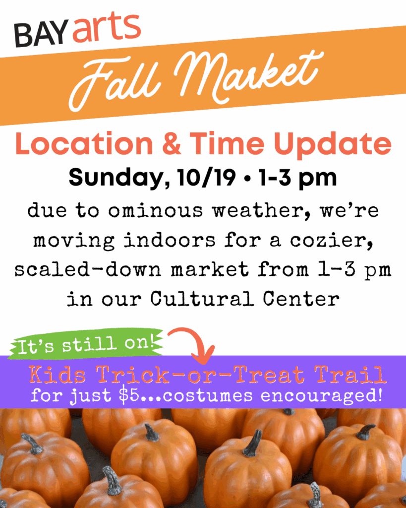 And great news: the annual Trick-or-Treat Trail with Friends of BAYarts is still on, so bring the kids in costume for a fun, family-friendly experience indoors for just $5!